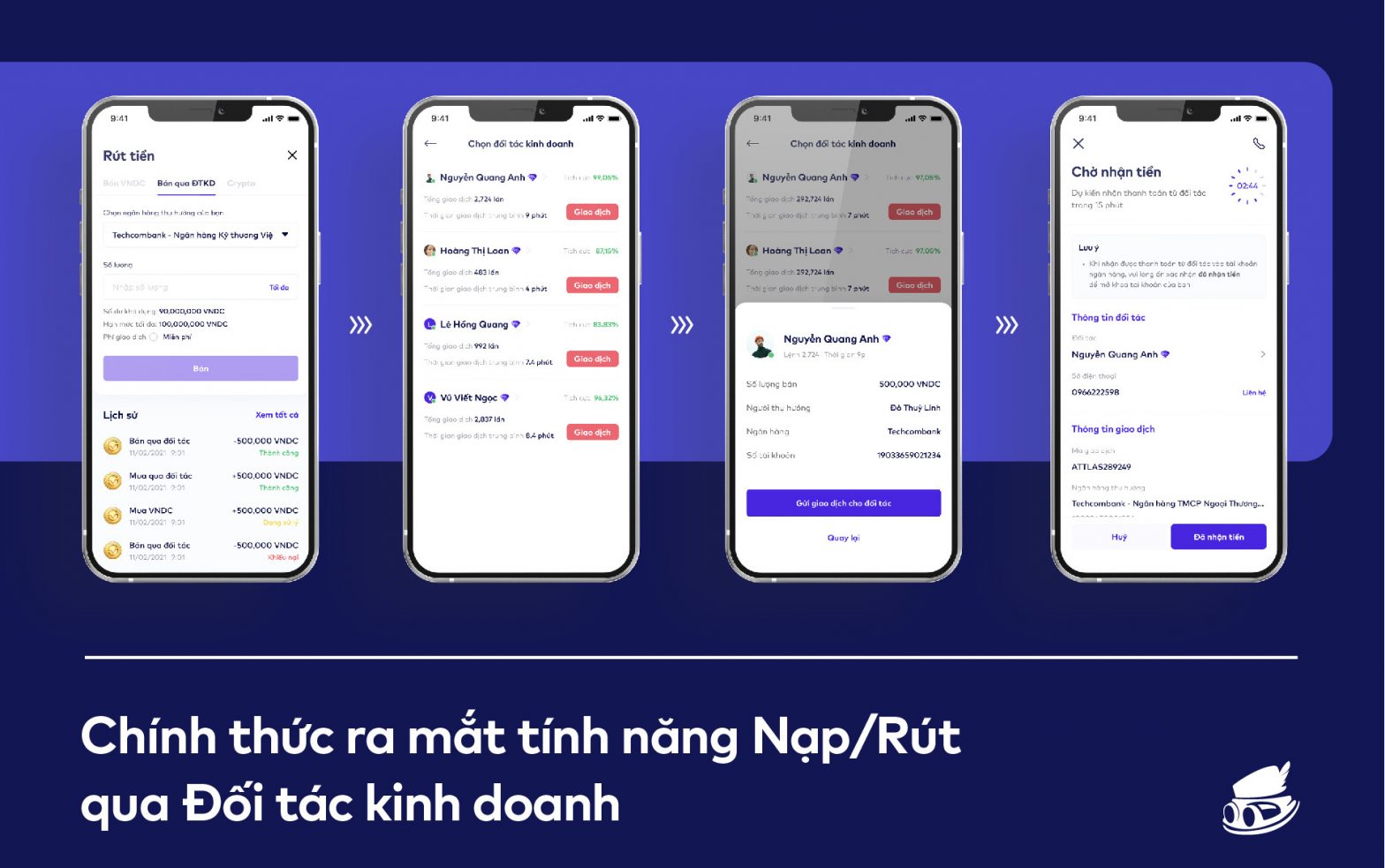 Bắt đầu từ ngày 17/12/2021, Attlas Exchange chính thức ra mắt tính năng nạp/rút VNDC qua Đối tác kinh doanh (ĐTKD) hay còn gọi là giao dịch P2P (peer-to-peer).