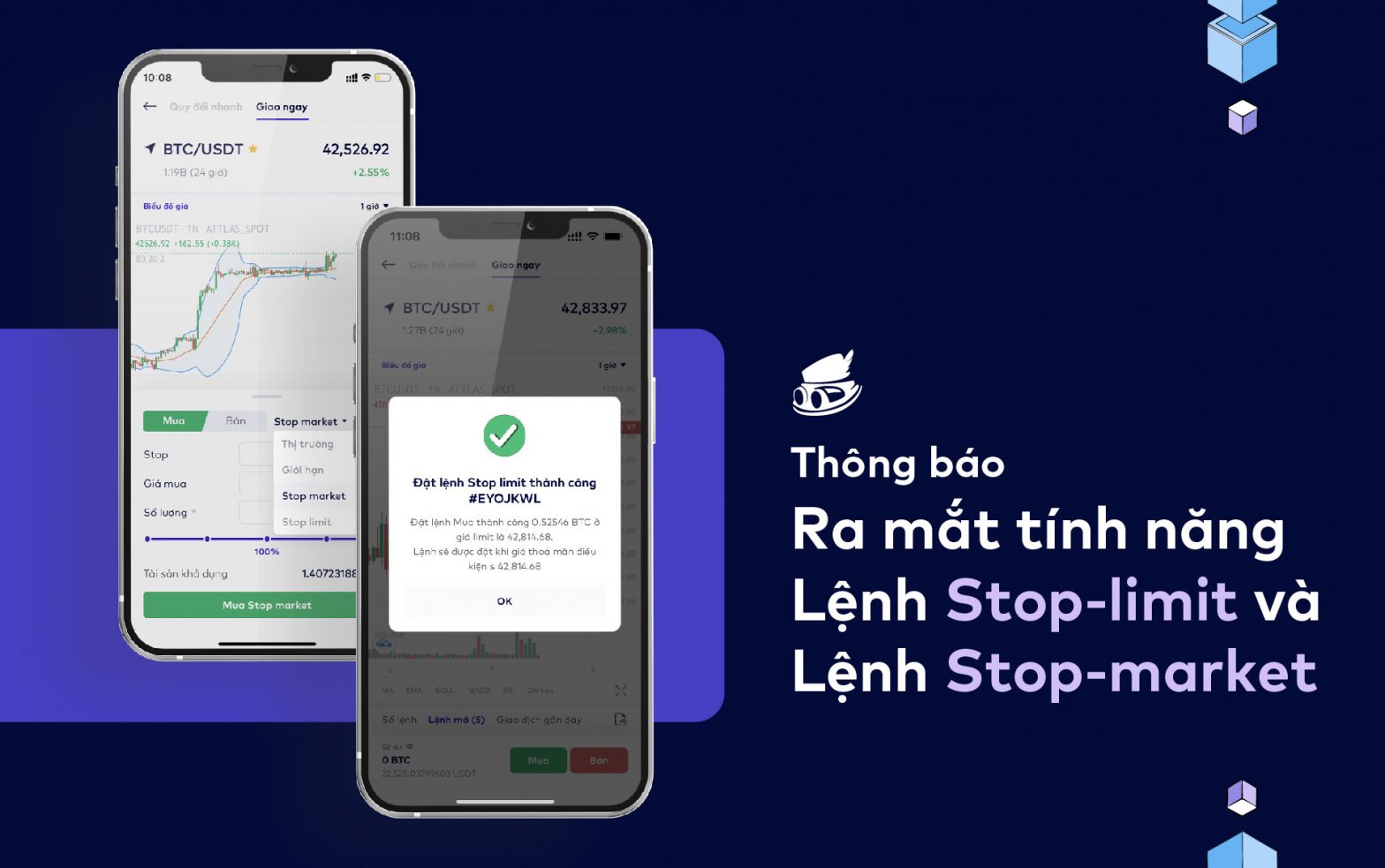 Bắt đầu từ ngày 06/02/2022, Attlas chính thức hỗ trợ đặt Lệnh Stop-limit và Lệnh Stop-market. Hai tính năng này sẽ giúp người dùng kiểm soát kế hoạch đầu tư tốt hơn trong mọi biến động thị trường.