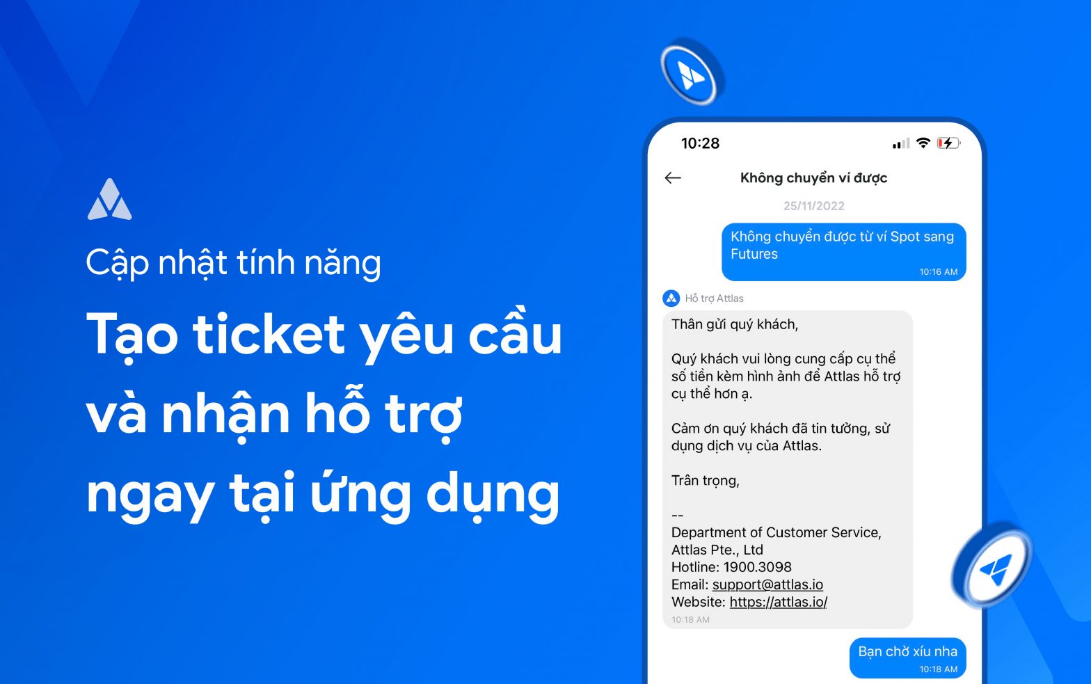 Attlas ra mắt tính năng mới giúp người dùng tạo ticket yêu cầu và nhận hỗ trợ từ Chăm sóc khách hàng trực tiếp tại ứng dụng.