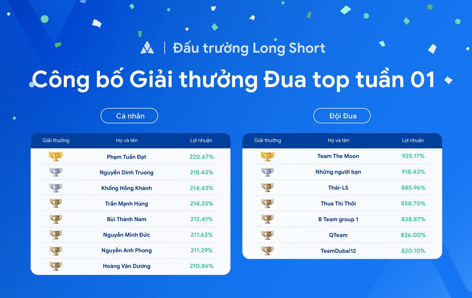 Chúc mừng những cá nhân và đội đua xuất sắc giành giải thưởng Tuần 1 của chương trình Đấu trường Long Short.