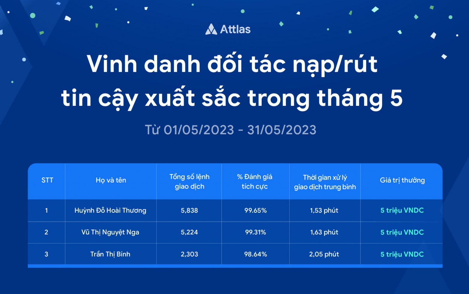 Vinh danh đối tác nạp/rút tin cậy xuất sắc tháng 5