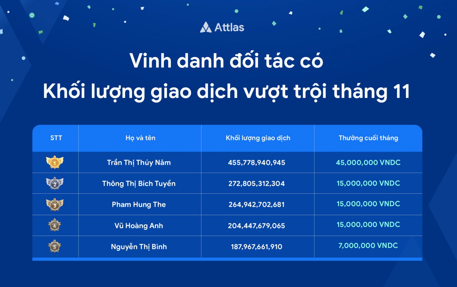 Chính sách thưởng cá nhân theo từng mốc khối lượng giao dịch người dùng cụ thể dành cho đối tác diễn ra từ 01/11/2023 – 30/11/2023 đã chính thức kết thúc, với kết quả ghi nhận như sau: