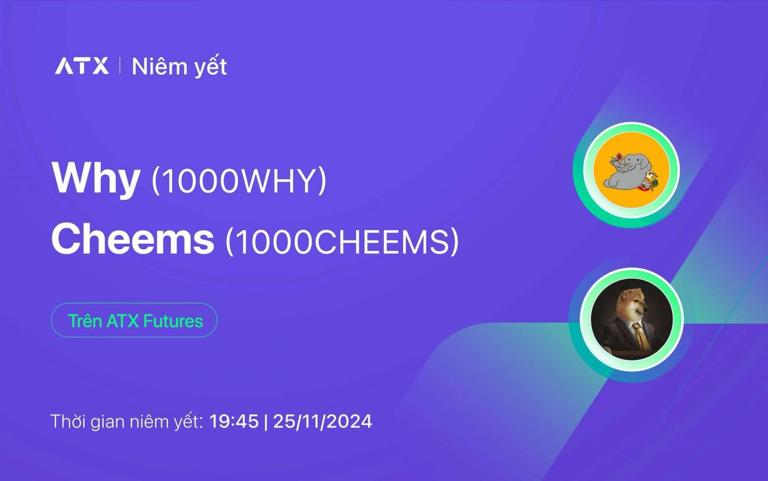ATX chính thức niêm yết 1000WHY & 1000CHEEMS Token trên ATX Futures từ 19:45 ngày 25/11/2024.