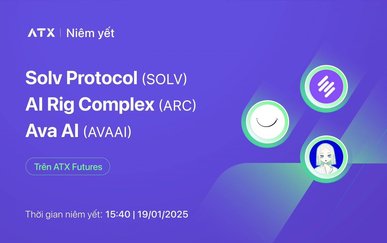 ATX chính thức niêm yết SOLV, ARC, AVAAI token từ 15:40 ngày 19/01/2025