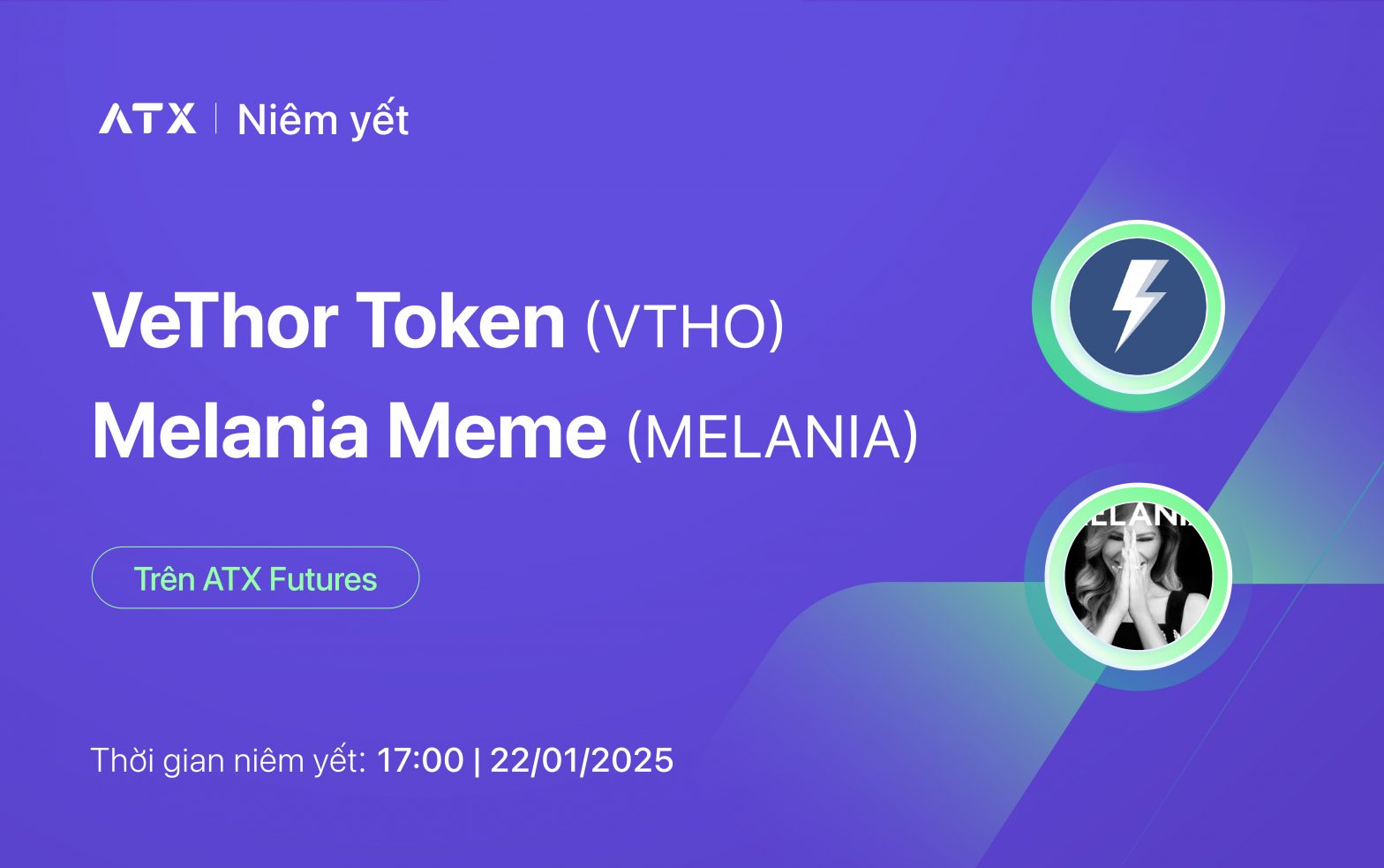 ATX chính thức niêm yết VTHO, MELANIA token trên ATX Futures từ 17:00 ngày 22/01/2025.