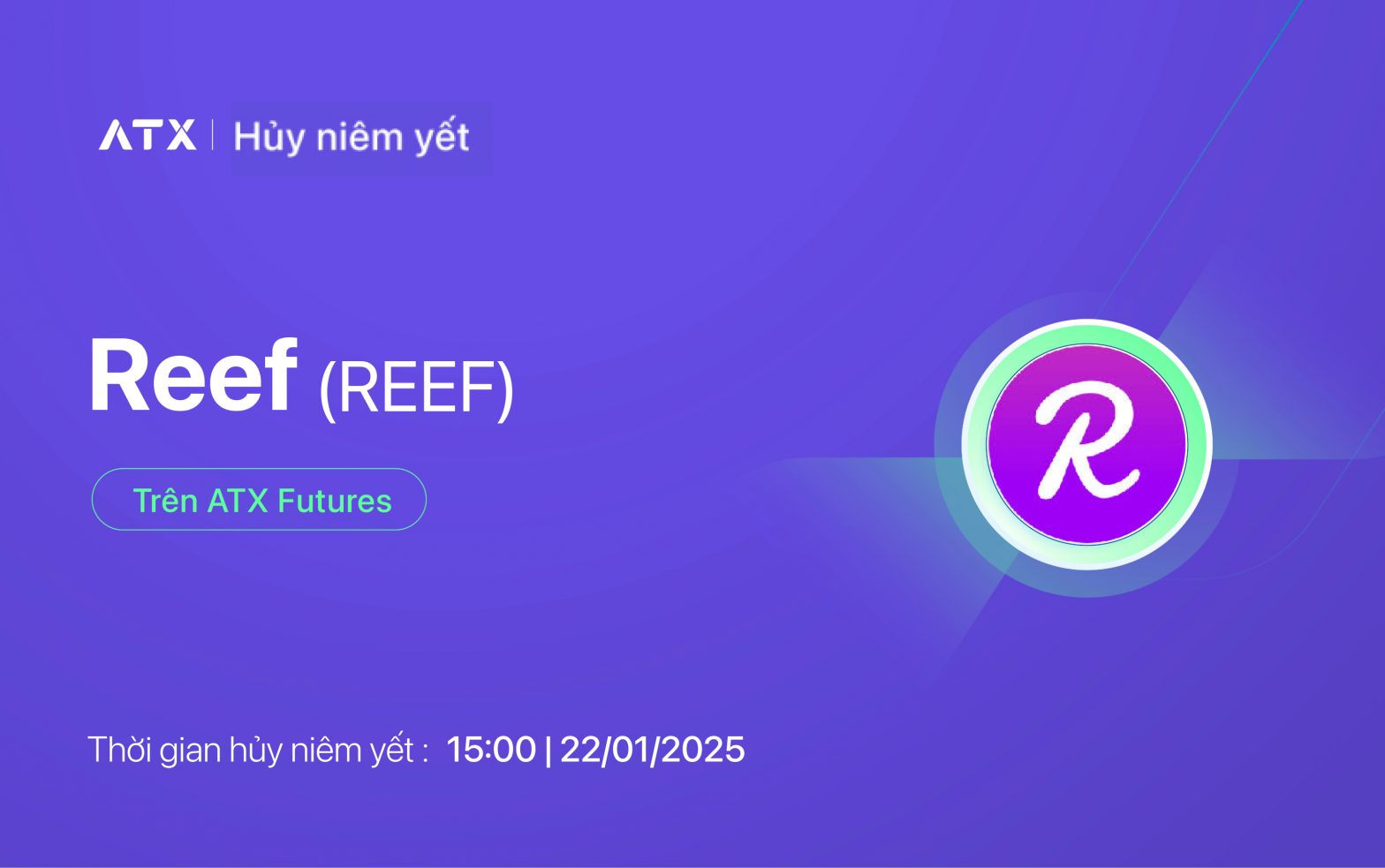 Hủy niêm yết REEF Token trên ATX Futures từ 15:00 ngày 22/01/2025.