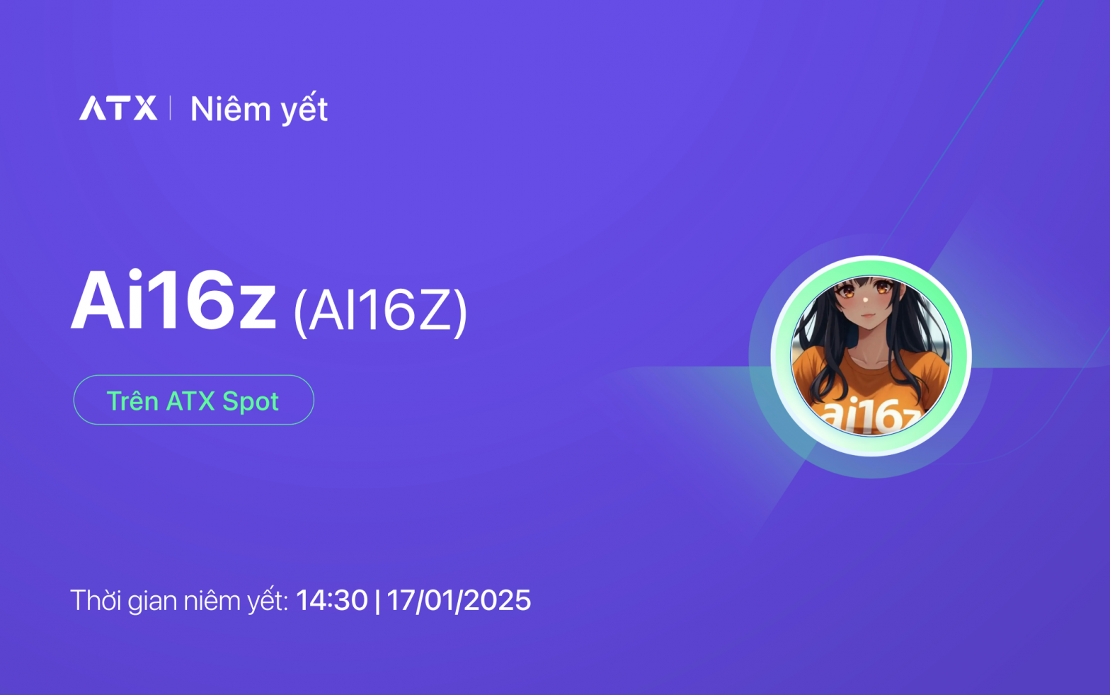 ATX chính thức niêm yết AI16Z token trên ATX Spot từ 14:30 ngày 17/01/2025.