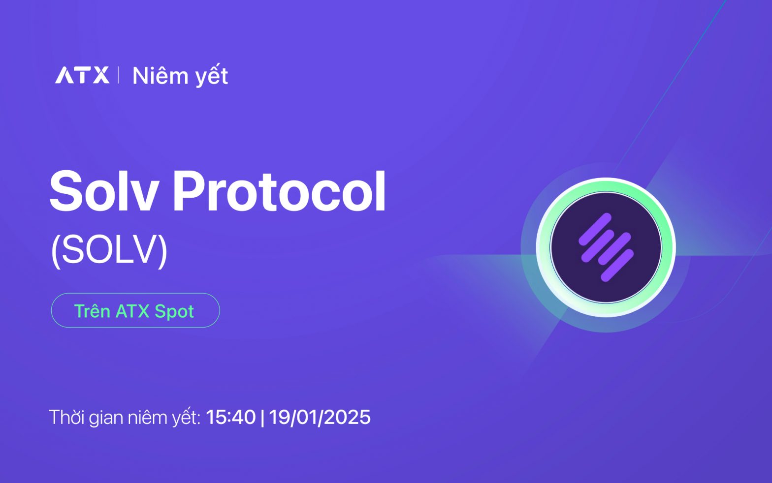 ATX chính thức niêm yết SOLV token trên ATX Spot từ 15:40 ngày 19/01/2025.