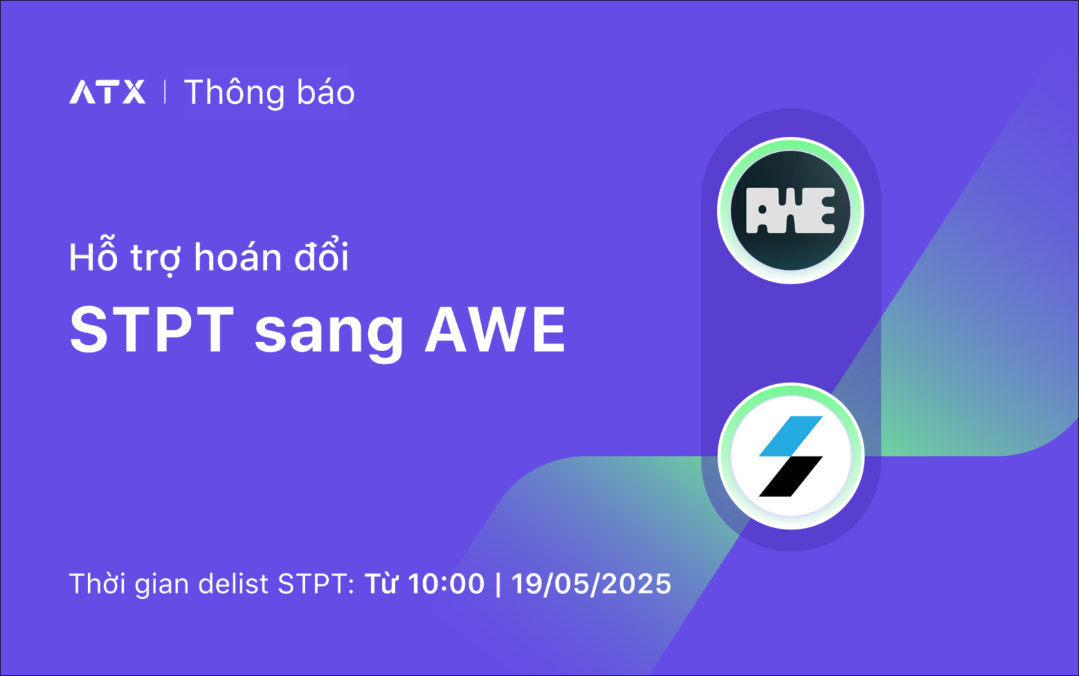 ATX hỗ trợ hoán đổi Standard Tokenization Protocol (STPT) sang AWE Network (AWE) từ 09:00 ngày 19/05/2025.