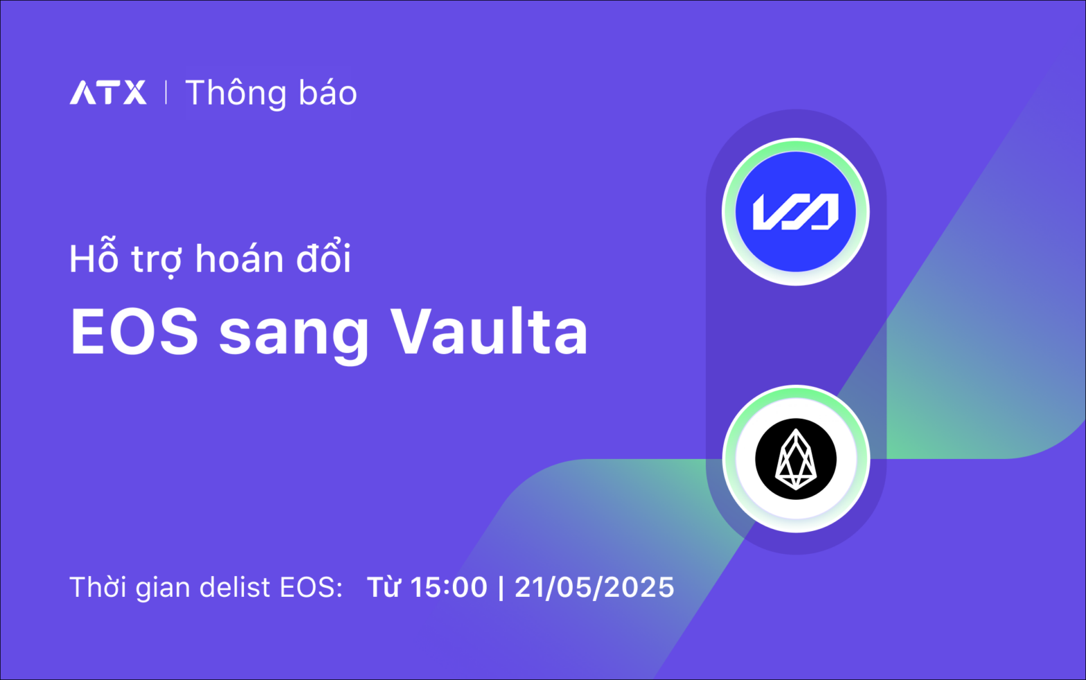 ATX hỗ trợ hoán đổi EOS (EOS) sang Vaulta (A) từ 15:00 ngày 21/05/2025.