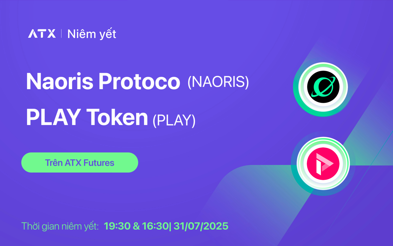 ATX chính thức niêm yết NAORIS & PLAY token trên ATX Futures từ 19:30 & 16:30 ngày 30/07/2025.