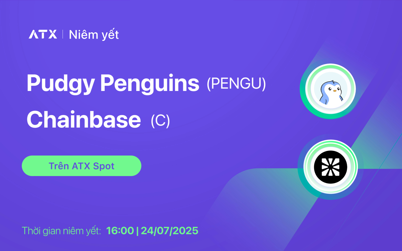 ATX chính thức niêm yết PENGU & C token trên ATX Spot từ 16:00 ngày 24/07/2025.