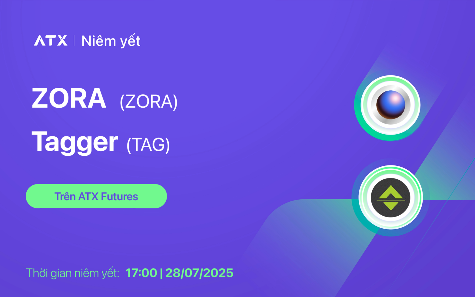 ATX chính thức niêm yết ZORA & TAG token trên ATX Futures từ 17:00 ngày 28/07/2025.