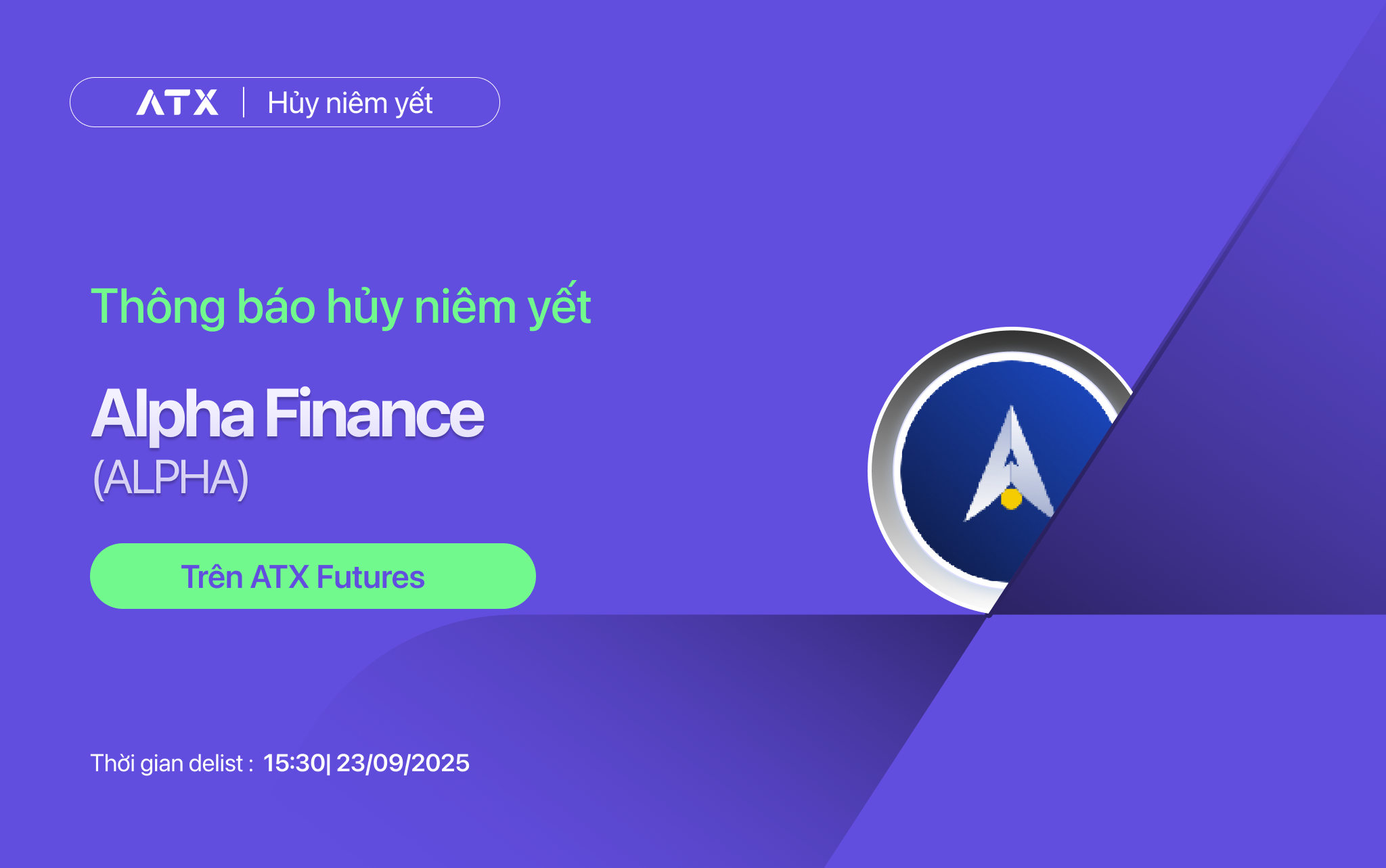 Hiện nay, các sàn giao dịch quốc tế đã có kế hoạch gỡ bỏ giao dịch với ALPHA token. Theo đó, ATX xin thông báo: Huỷ niêm yết các cặp giao dịch ALPHA/USDT, ALPHA/VNDC trên ATX Futures.