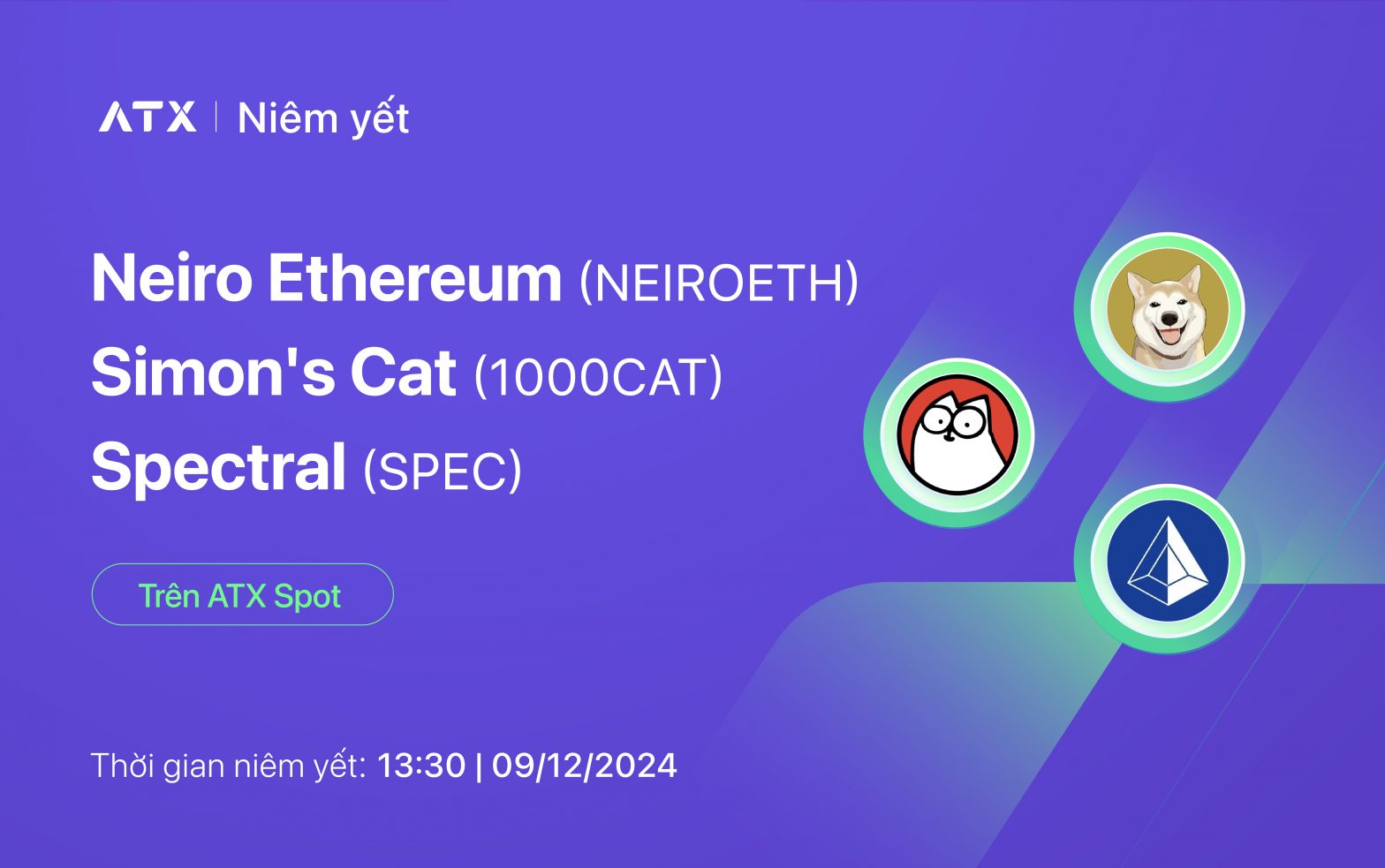 - Từ 13:30 ngày 09/12/2024, ATX sẽ mở giao dịch Spot và hỗ trợ các cặp giao dịch NEIROETH/VNDC, NEIROETH/USDT; 1000CAT/VNDC, 1000CAT/USDT & SPEC /VNDC; SPEC /USDT