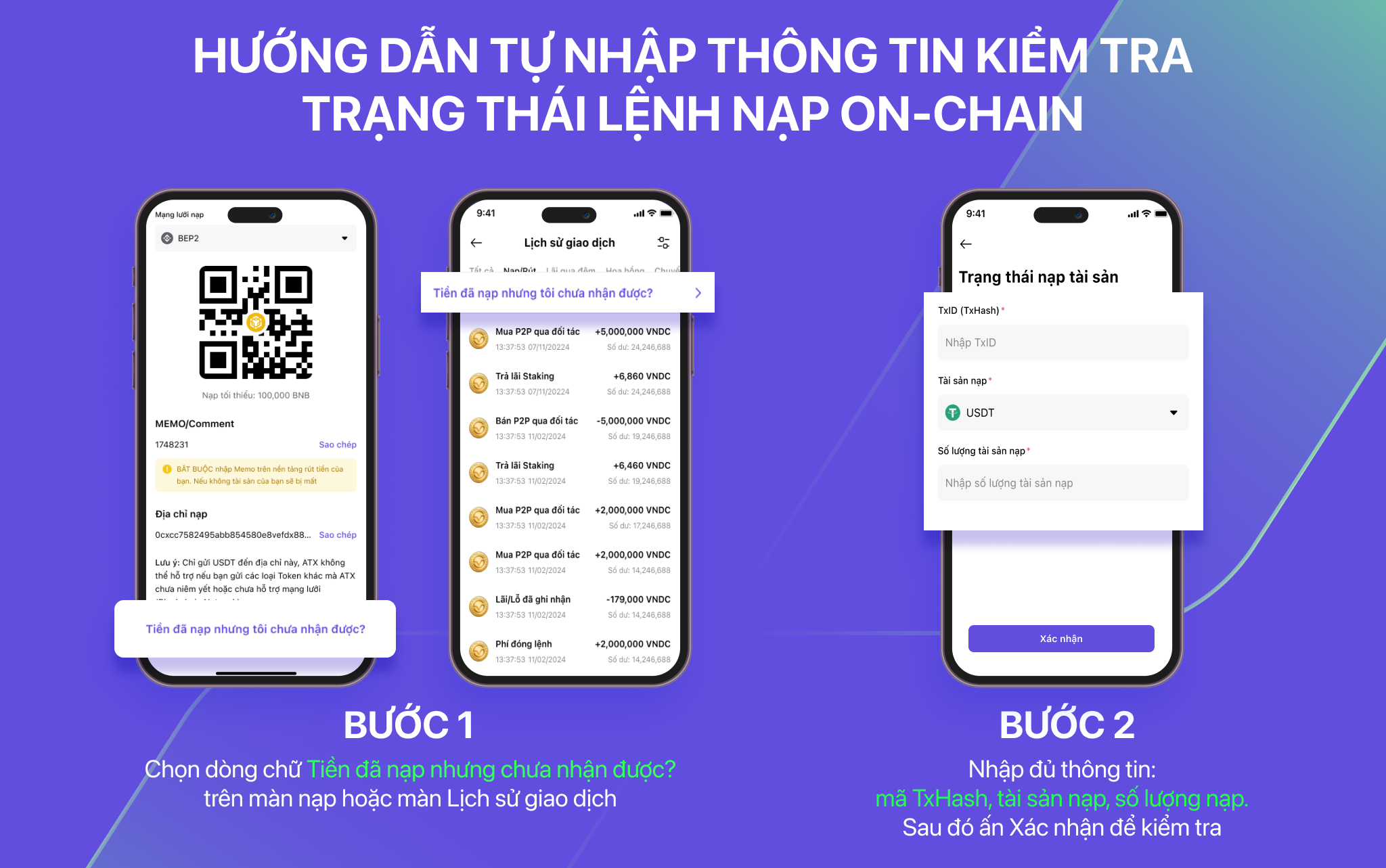 Cách tự kiểm tra trạng thái lệnh nạp On-chain: